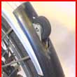 the too small standard castors (rollers) on which the folded bike stands. So: