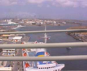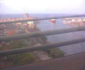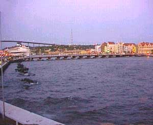 right Otrobanda. There's a big ship going out, what means the Queen Emma Ponton Bridge is