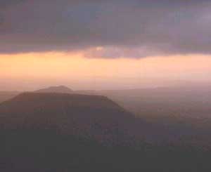 In the front you see a mountain with a very flat top (it's out of